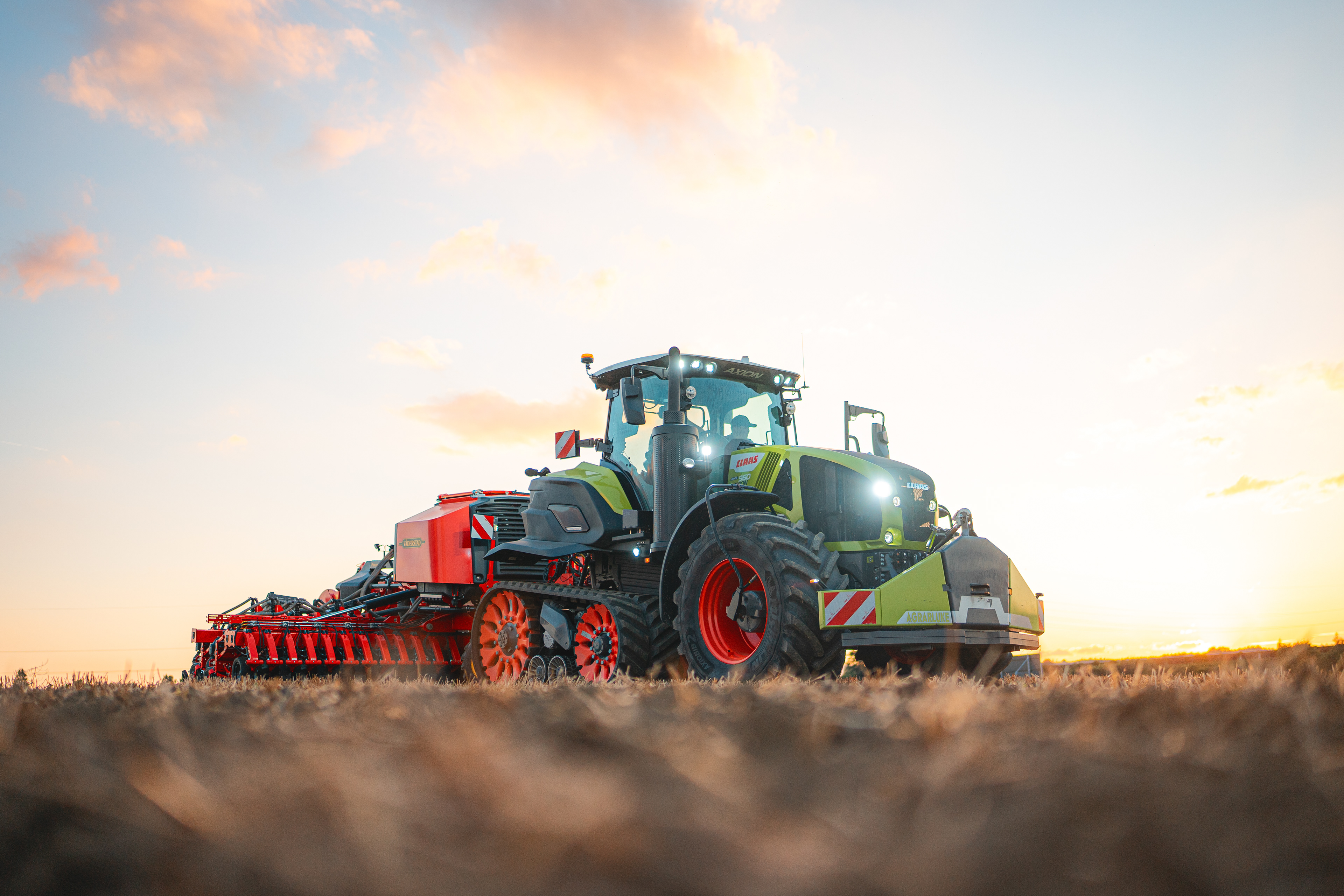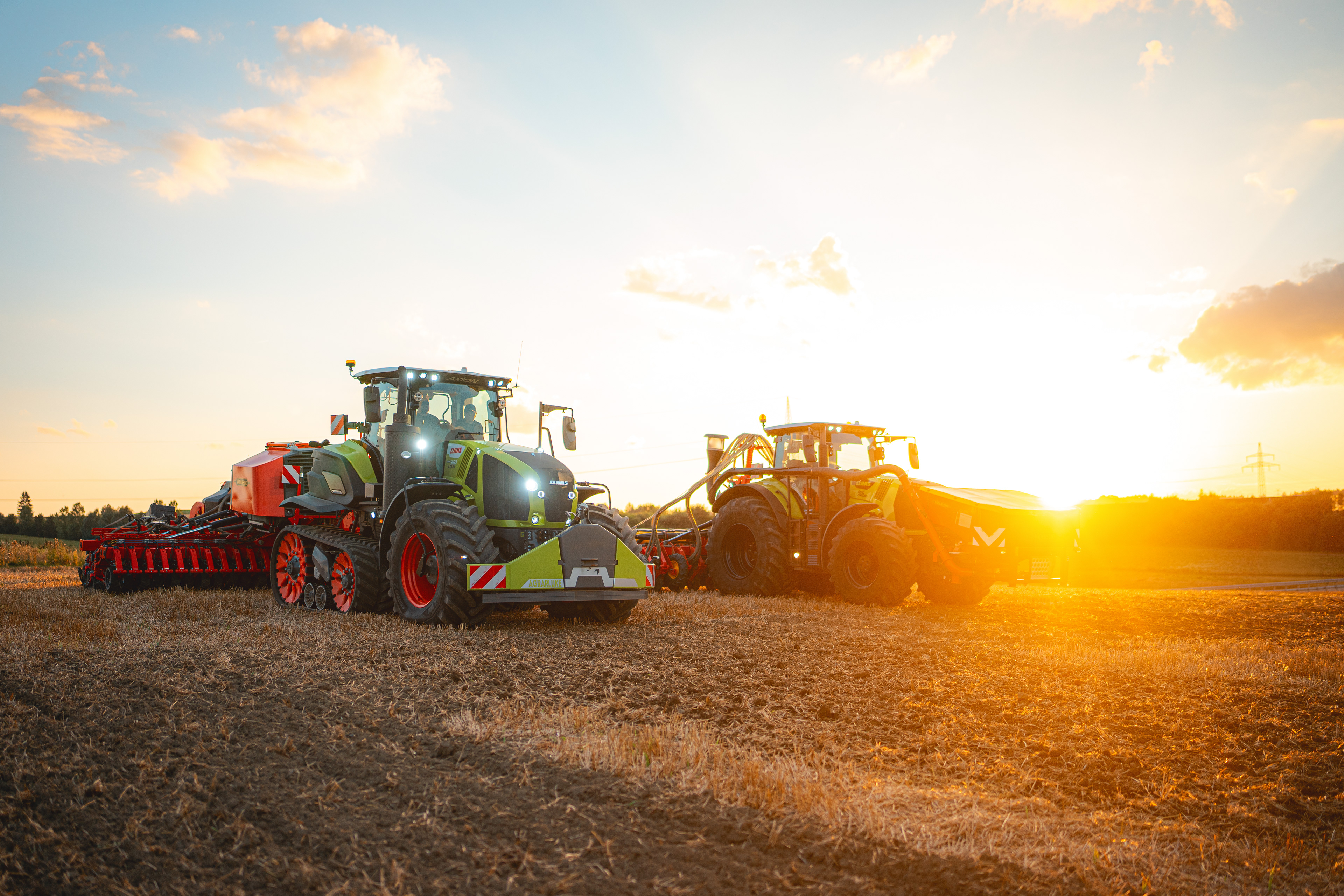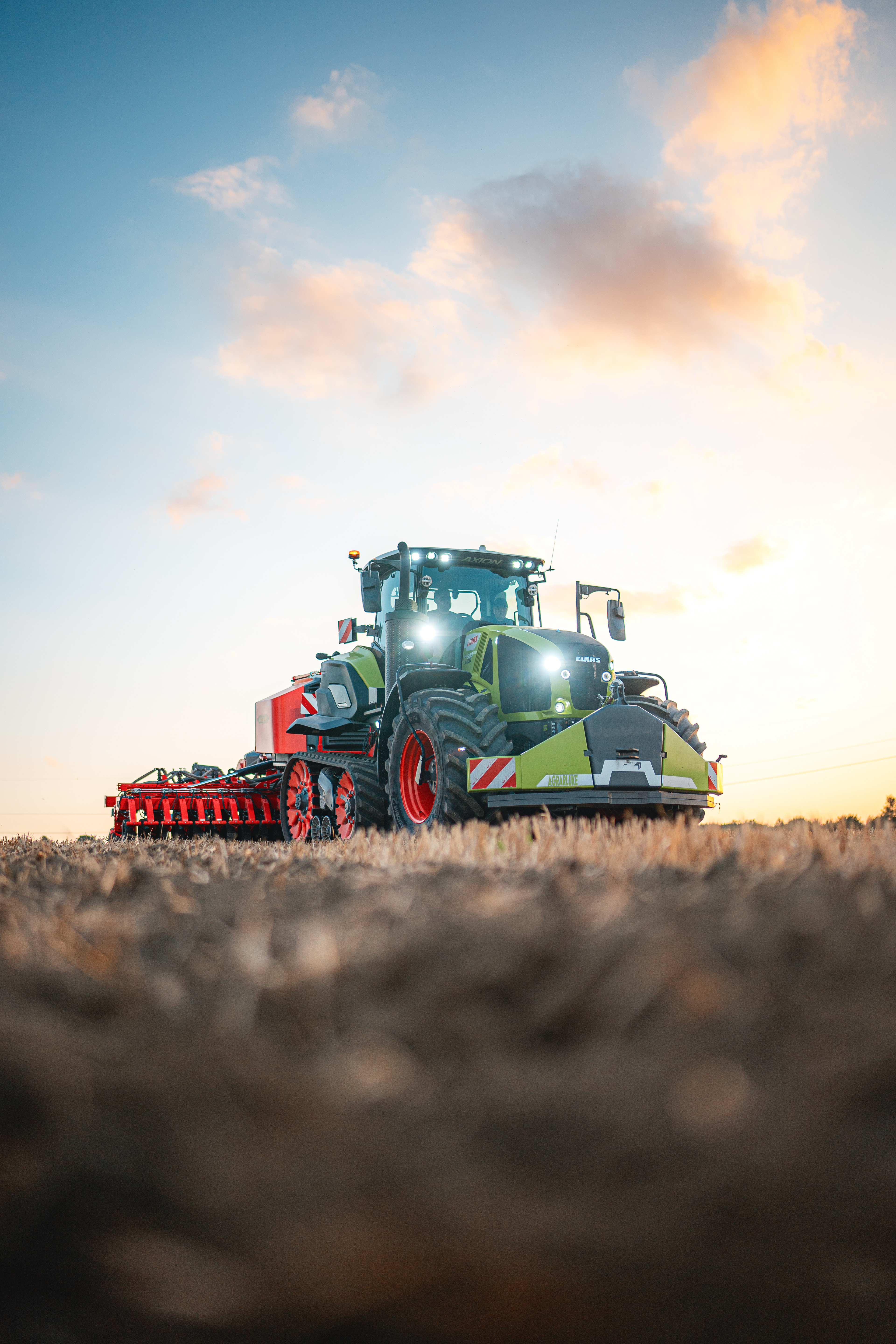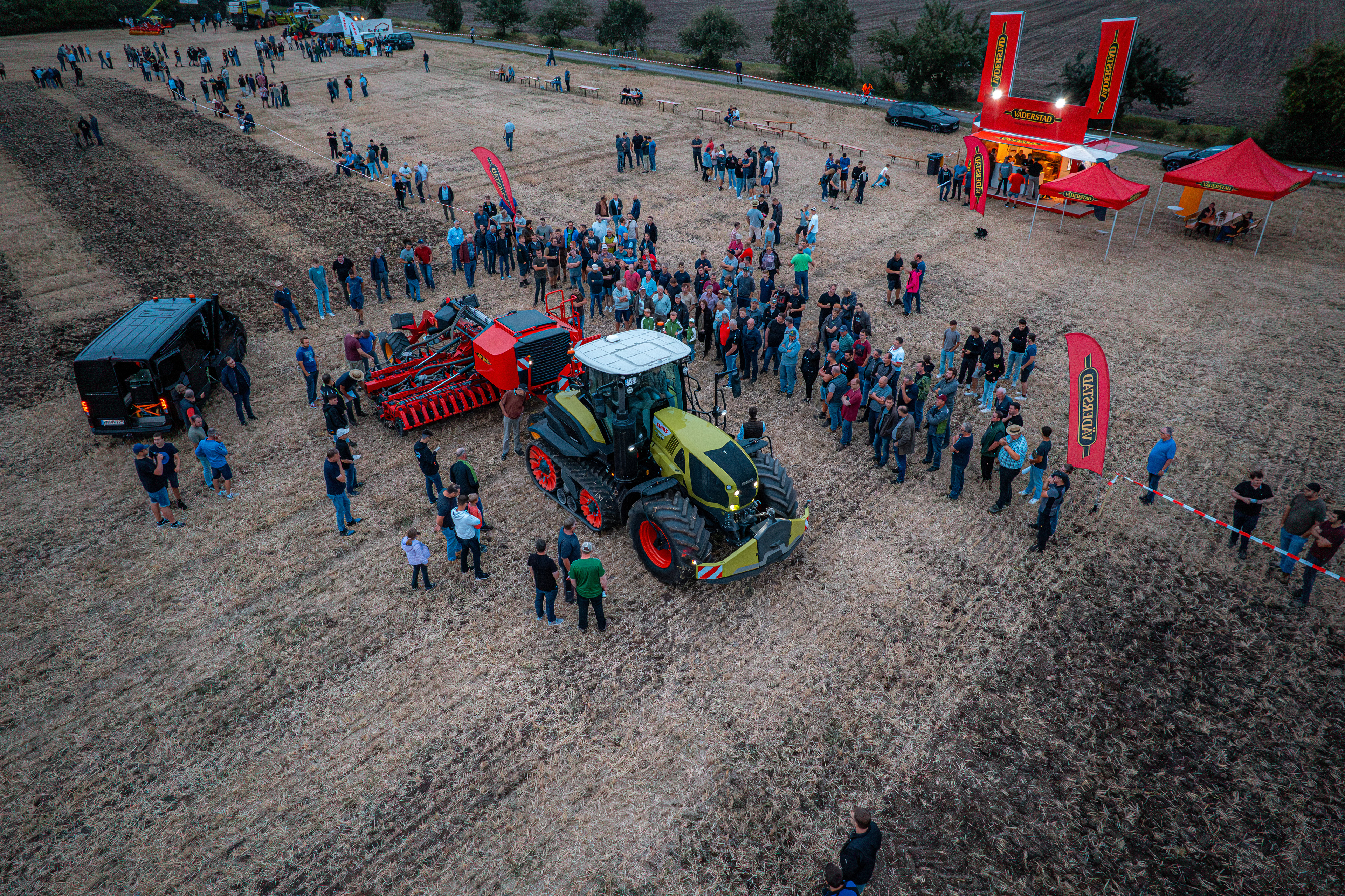 In den Einsatz geführt wurde das Gespann standesgemäß vom Claas Axion Terra Trac. Außerdem im Einsatz: das Portfolio an Grubber vom Swift bis zum TopDown mit E-Service, die Scheibenegge Carrier, die Sämaschinen Rapid und Spirit und natürlich die Hochgeschwindigkeits-Einzelkornsämaschine Tempo.
